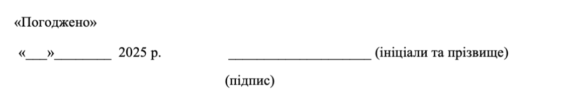 В окремому додатку до ТД містилася Технічна специфікація, в кінці якої була графа, де зазначається підпис, ініціали та прізвище, та дата.